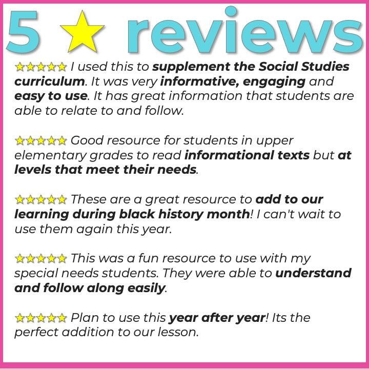 Perfect for classrooms, homeschool, tutoring, or small group instruction, this resource offers a meaningful way to blend social studies reading with literacy instruction using accessible nonfiction reading passages.