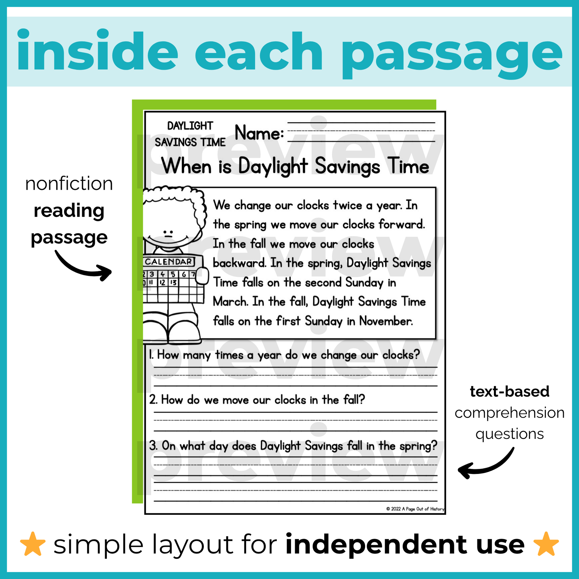 Perfect for classrooms, homeschool, tutoring, or small group instruction, this resource provides meaningful Daylight Savings Time activities that blend social studies reading with real-world learning in an accessible, age-appropriate way.