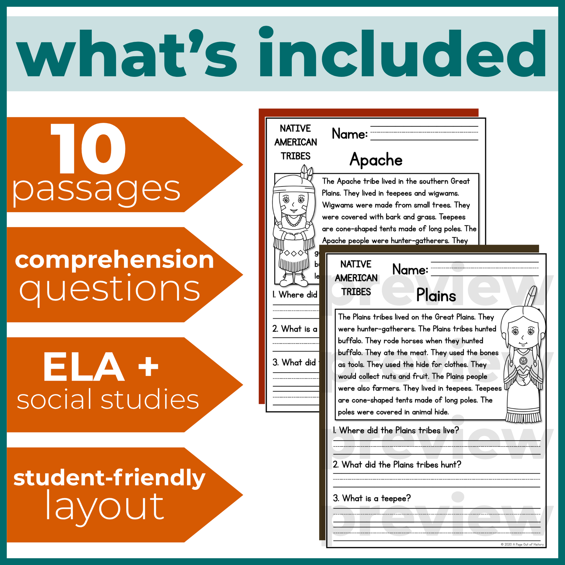 Native American Indigenous Tribes Reading Comprehension Passages + Questions