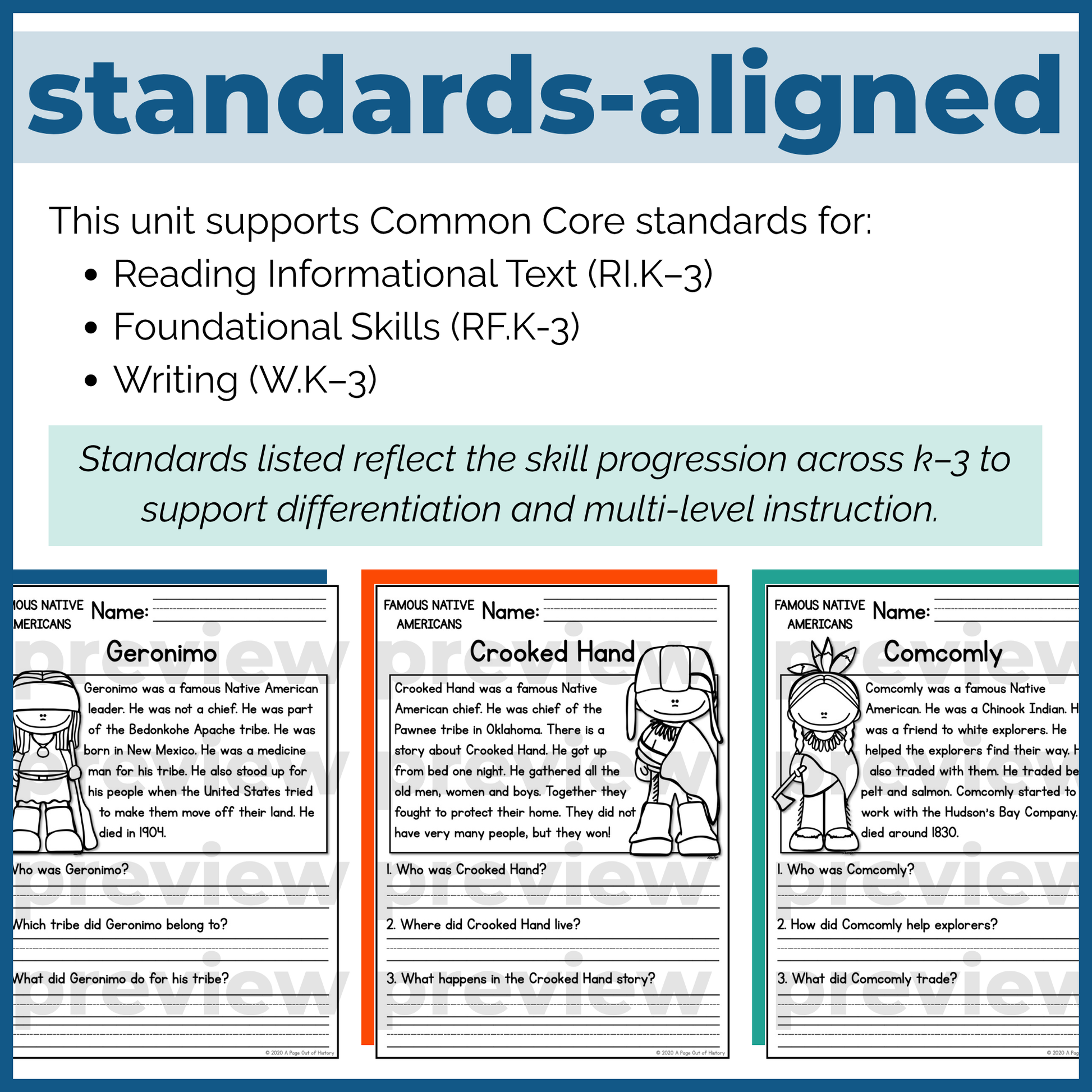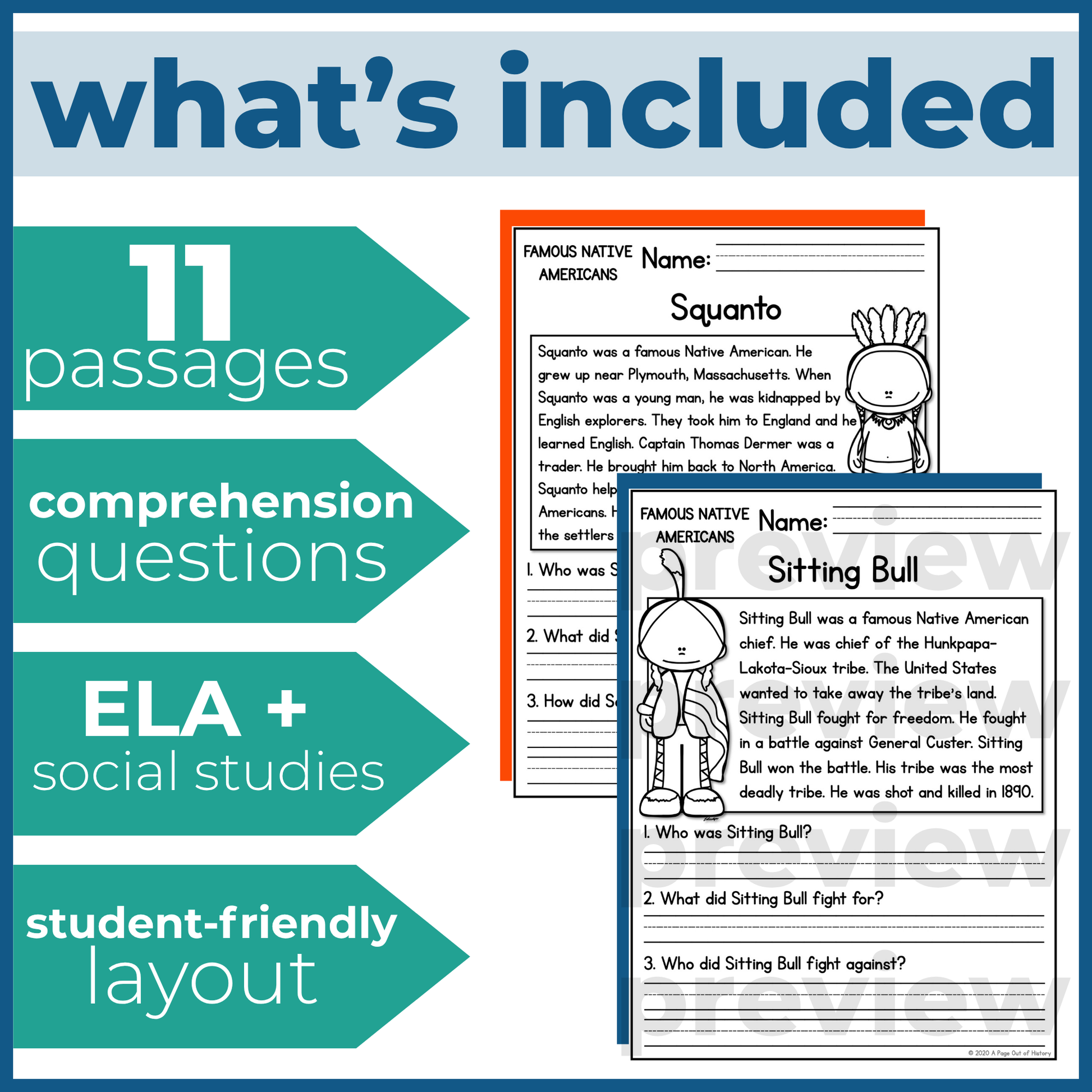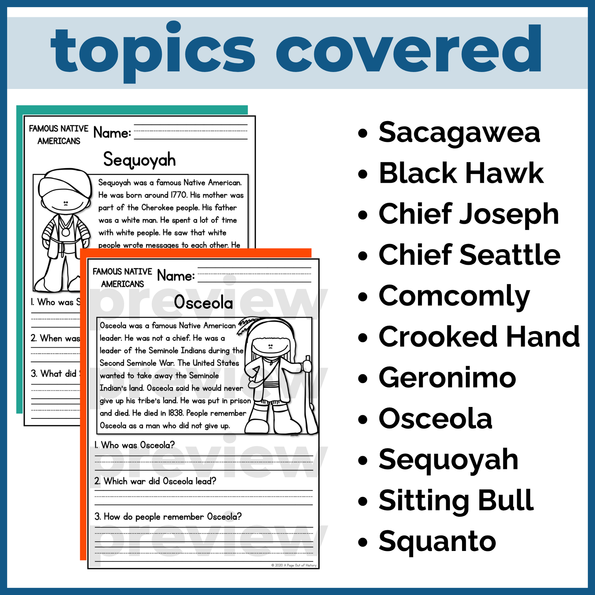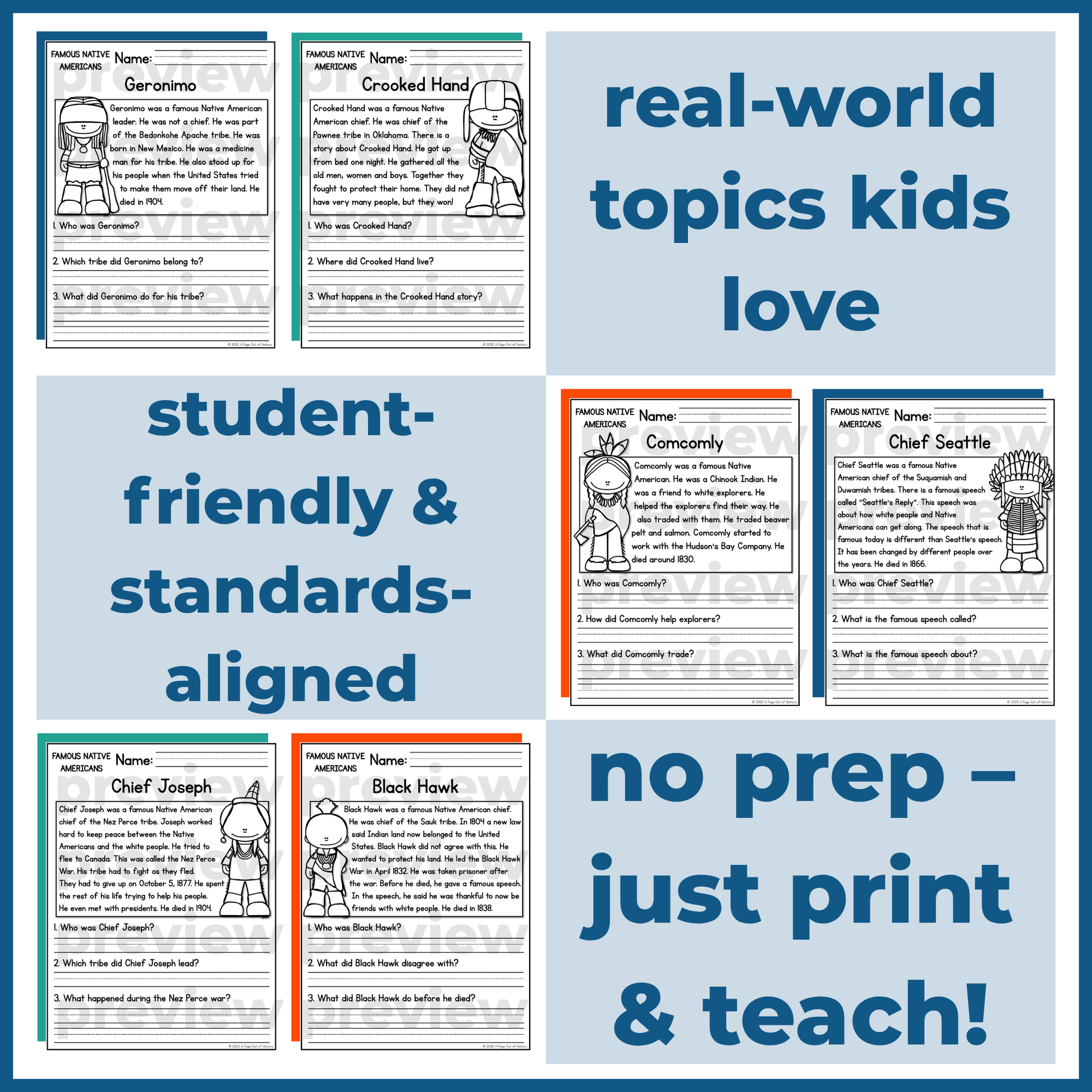 Each passage introduces important historical figures connected to Native American history and Indigenous cultures, helping learners build key reading skills in a meaningful and engaging way.